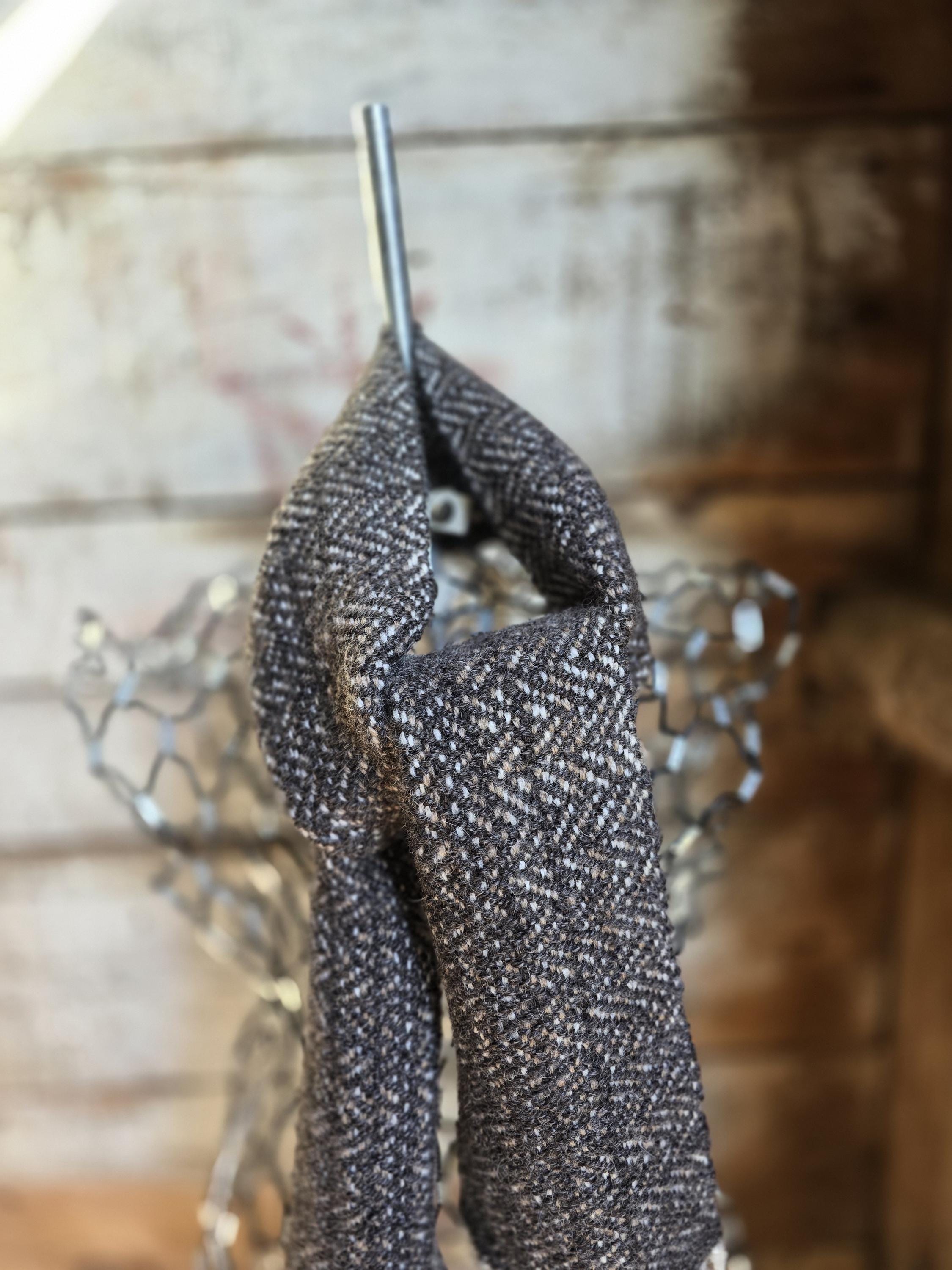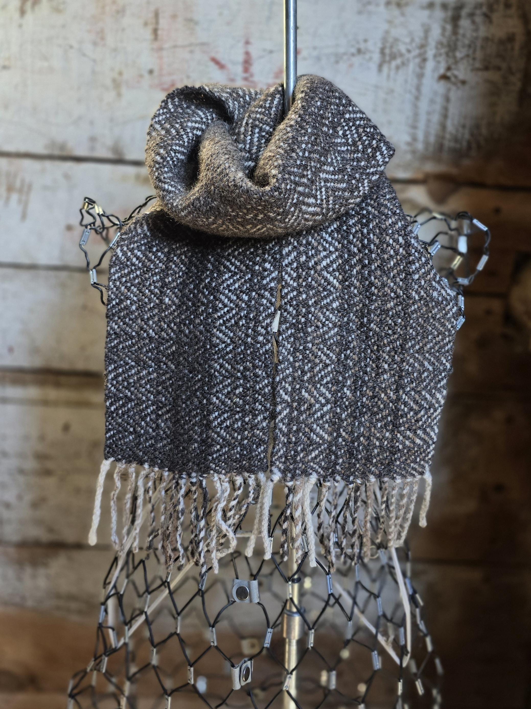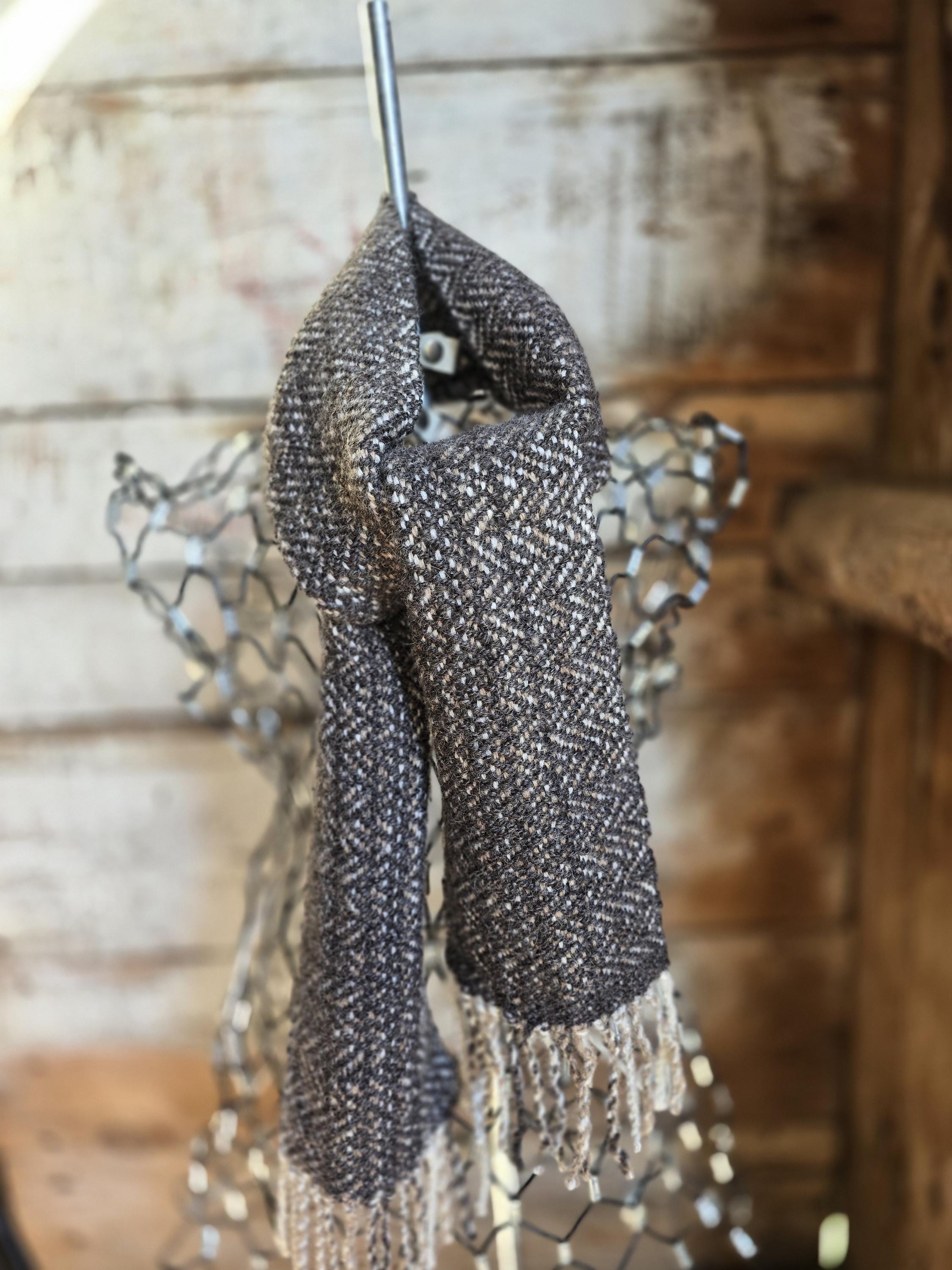 Handwoven right here on the farm this scarf represents our Shetland sheep.