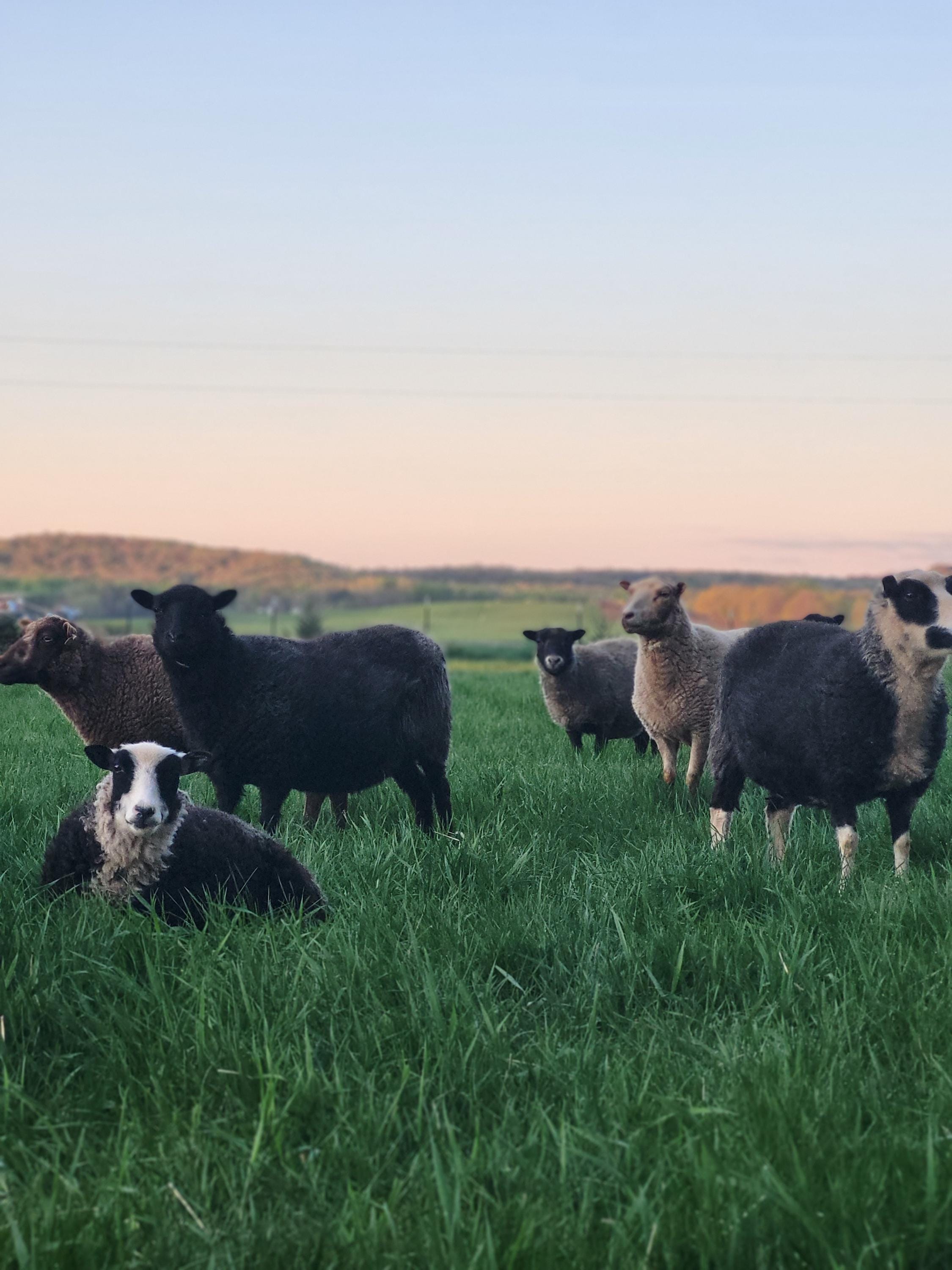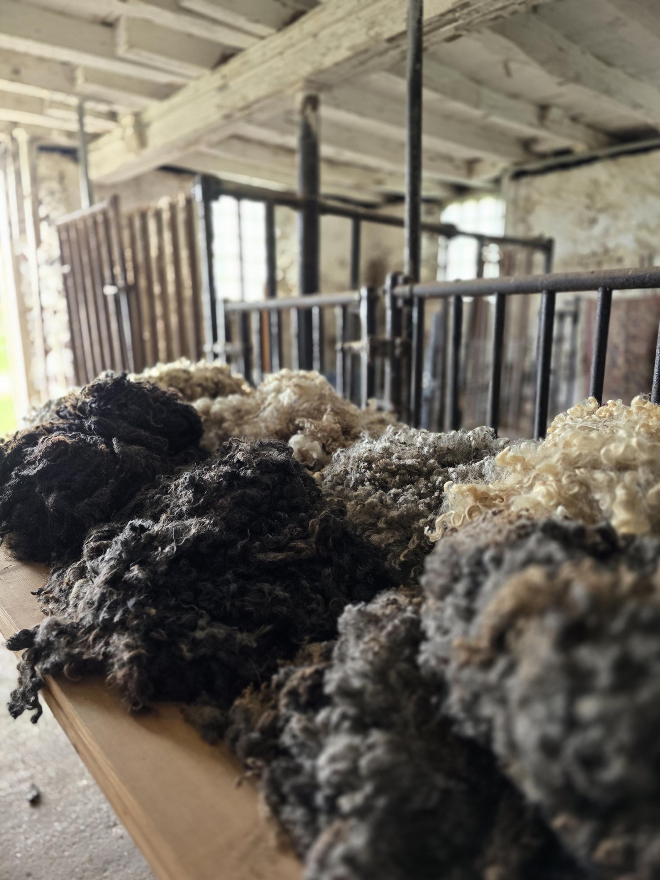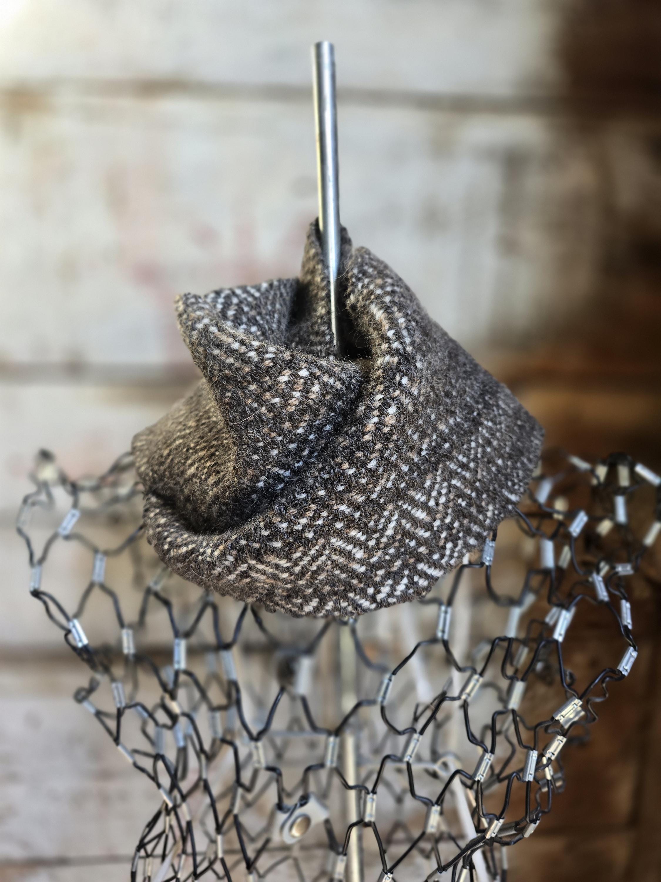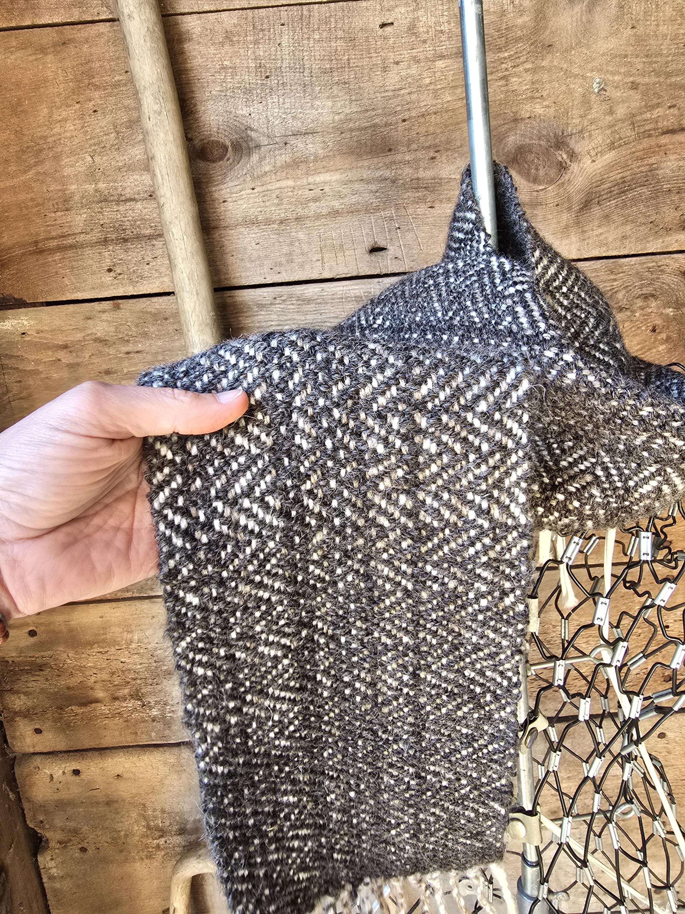 Handwoven right here on the farm this scarf represents our Shetland sheep.
