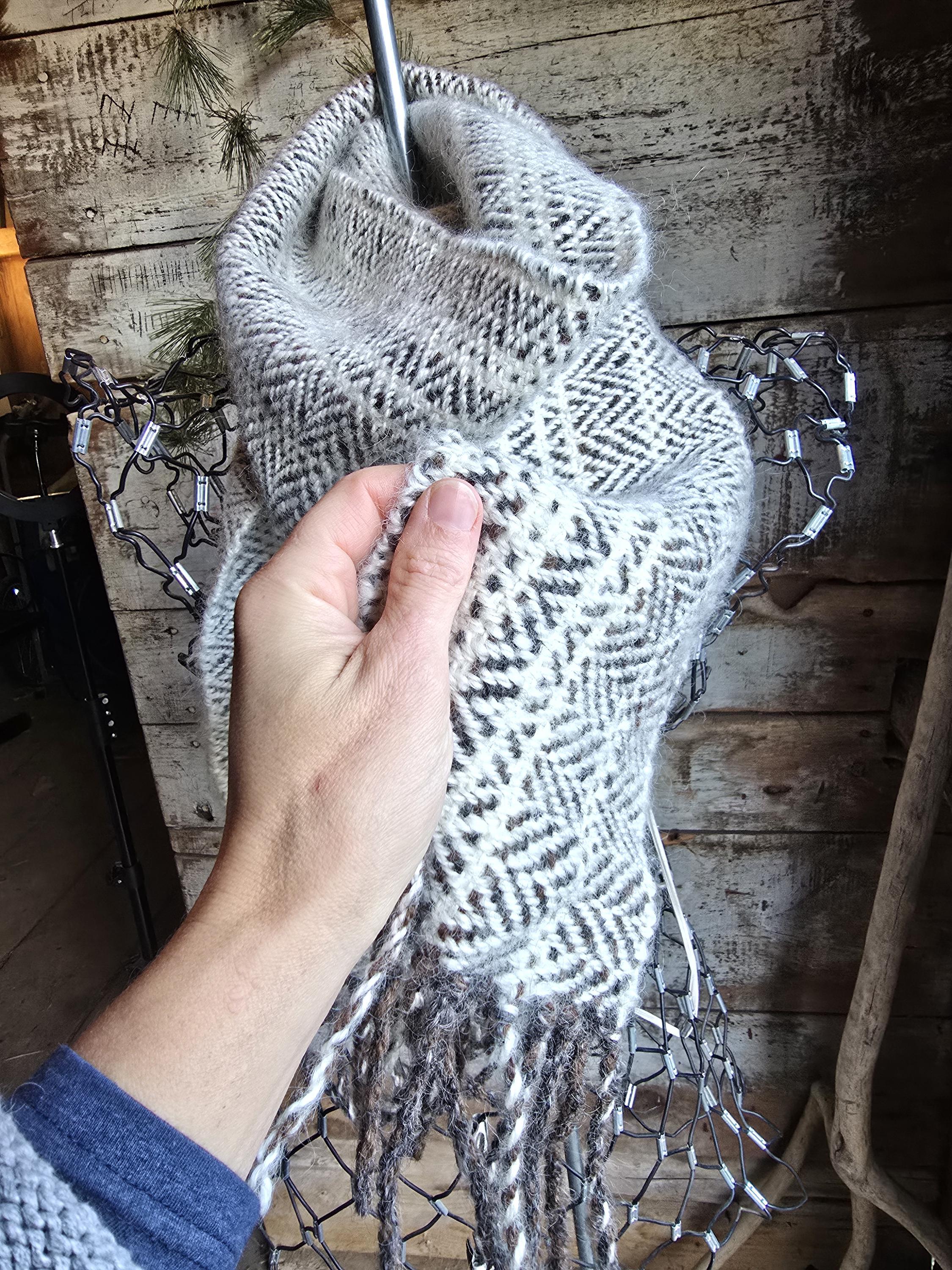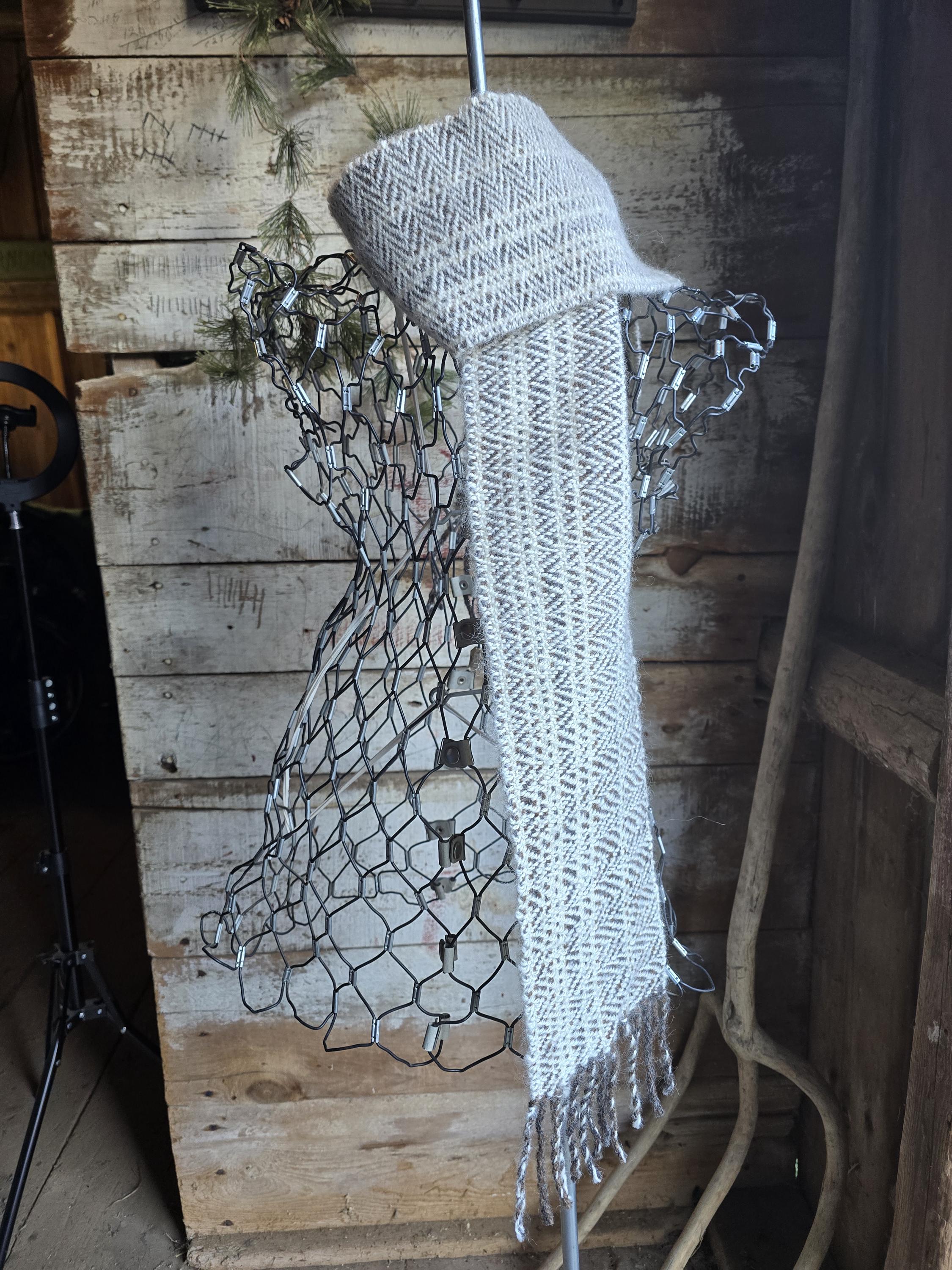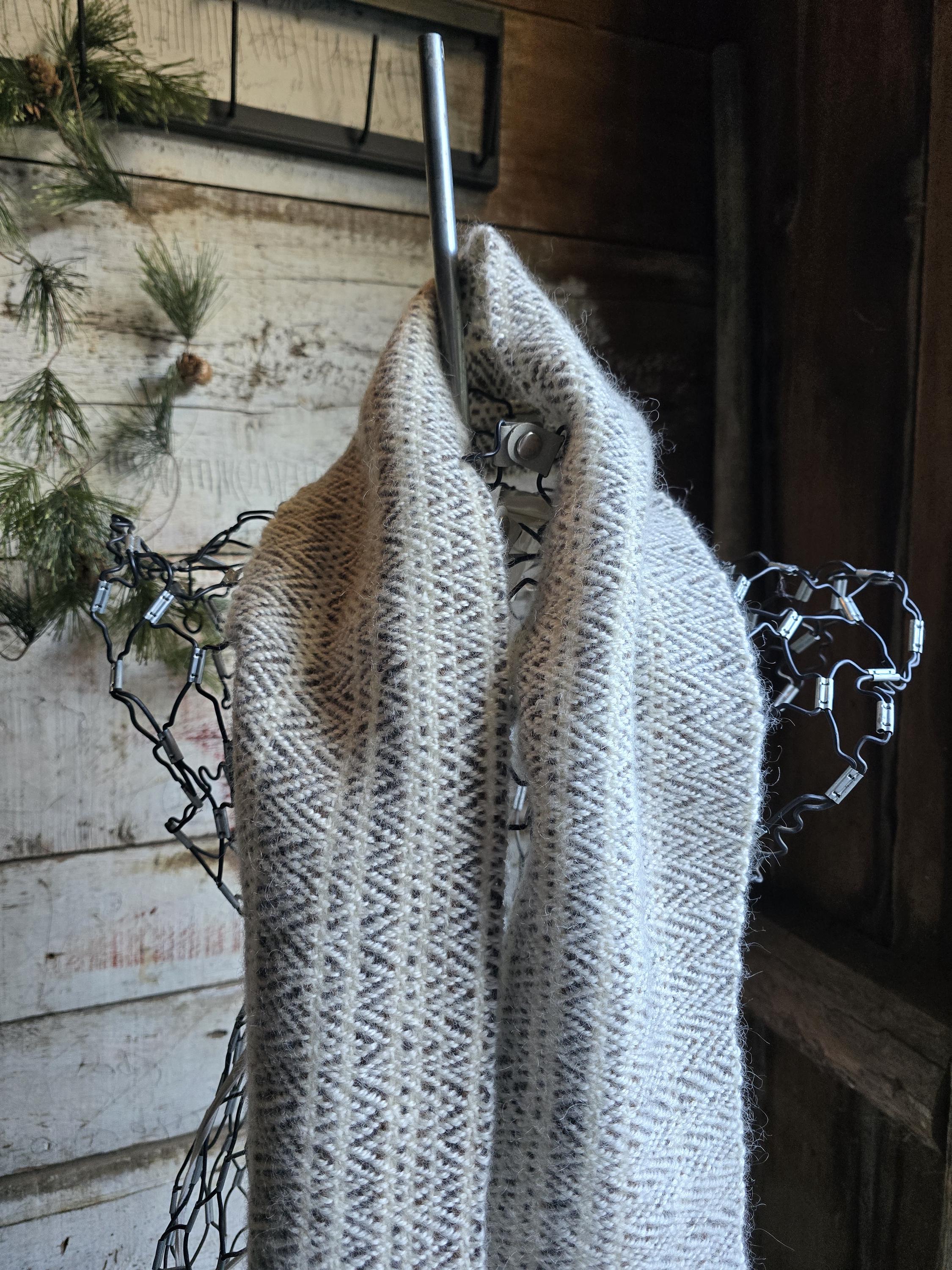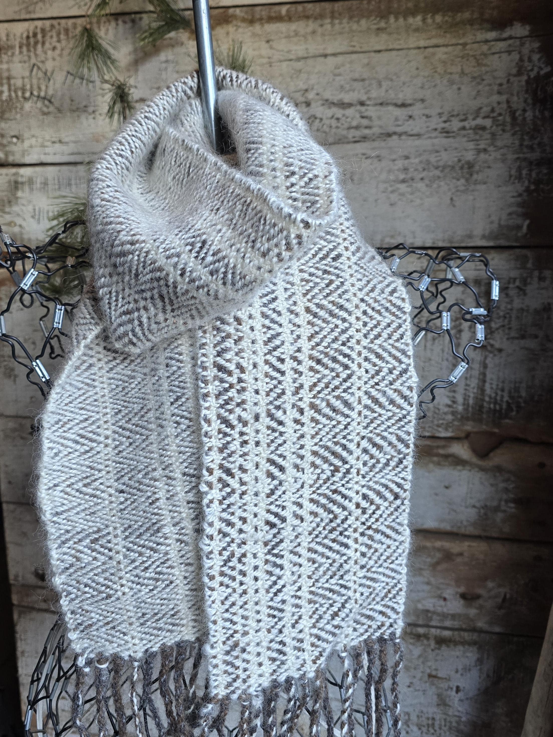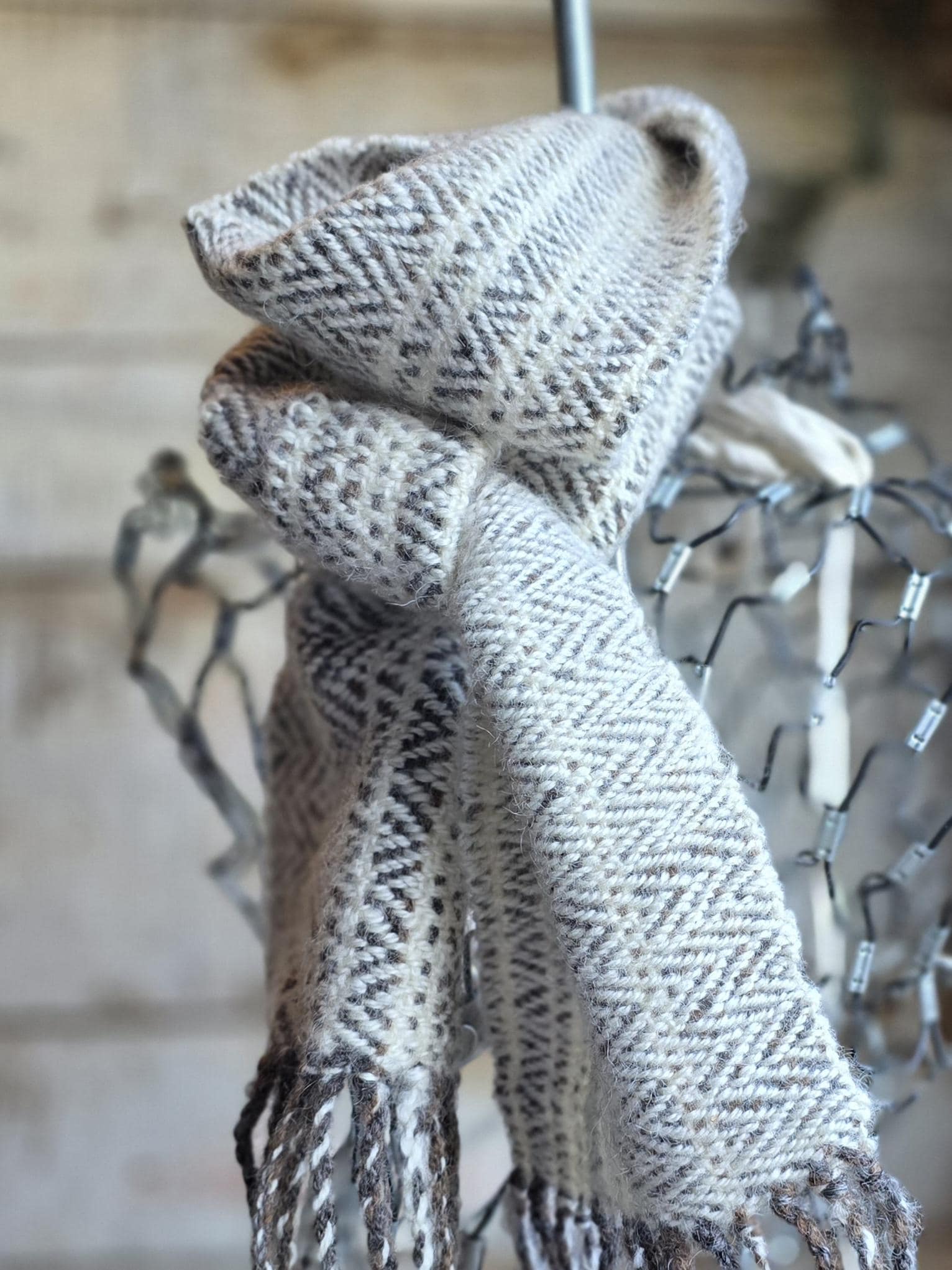 Handwoven right here on the farm this scarf features our Leciester Longwool flock. This heritage breed is know your their lustrous long fleece. Soft lustrous feel.